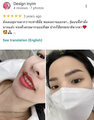 ด้านการสักคิ้วลายเส้นธรรมชาติ และ ฝังสีปาก ที่มีความละมุน โดยเน้นความสวย ธรรมชาติตั้งแต่หลังทำเสร็จทันที โดย Master Nhune